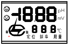 哭臉——測(cè)量狀態(tài),斜率<85%時(shí)顯示單位。玻璃電極性能下降,應(yīng)及時(shí)更換。