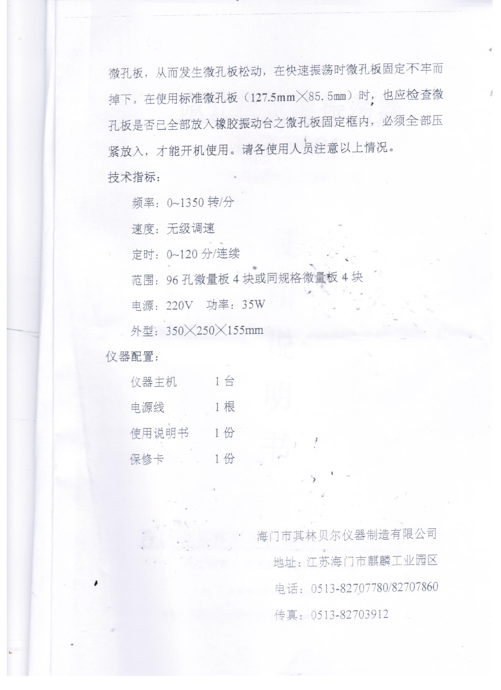 海門其林貝爾微孔板快速振蕩器(調(diào)速、定時(shí))QB-9001