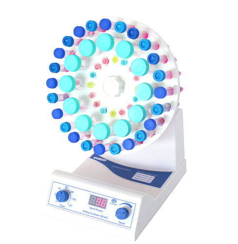 旋轉(zhuǎn)培養(yǎng)器。該儀器集多種試驗(yàn)管為一體,旋轉(zhuǎn)角度可隨意調(diào)節(jié),可連續(xù)或定時(shí)工作??筛鶕?jù)需要放入恒溫箱中使用。